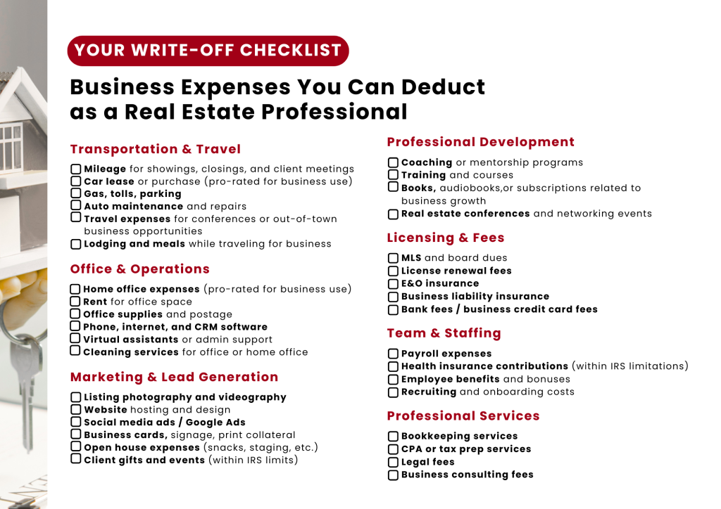 Many agents miss out on legitimate deductions simply because no one ever gave them a clear, real-estate-specific list of what can be written off. That ends today.